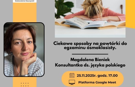 Szanowni Państwo,serdecznie zapraszamy nauczycieli języka polskiego na webinarium nt."Ciekawe sposoby na powtórki do egzaminu ósmoklasisty", które odb...