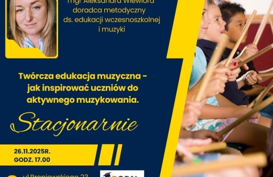 Szanowni Państwo,serdecznie zapraszamy nauczycieli edukacji wczesnoszkolnej i nauczycieli muzyki na warsztaty stacjonarne pt. "Twórcza edukacja muzycz...