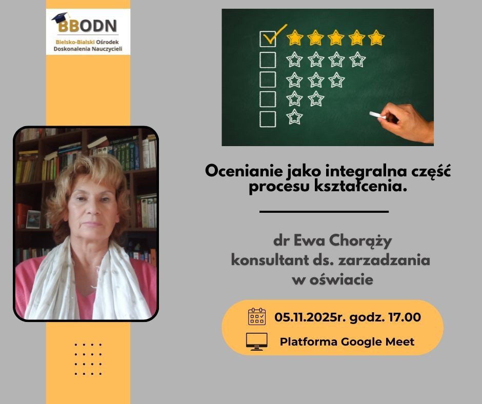 Szkolenie odbędzie się 05.11.2025r. o godz. 17.00 na platformie Google Meet a poprowadzi je dr Ewa Chorąży konsultantka ds. zarządzania w oświacie.