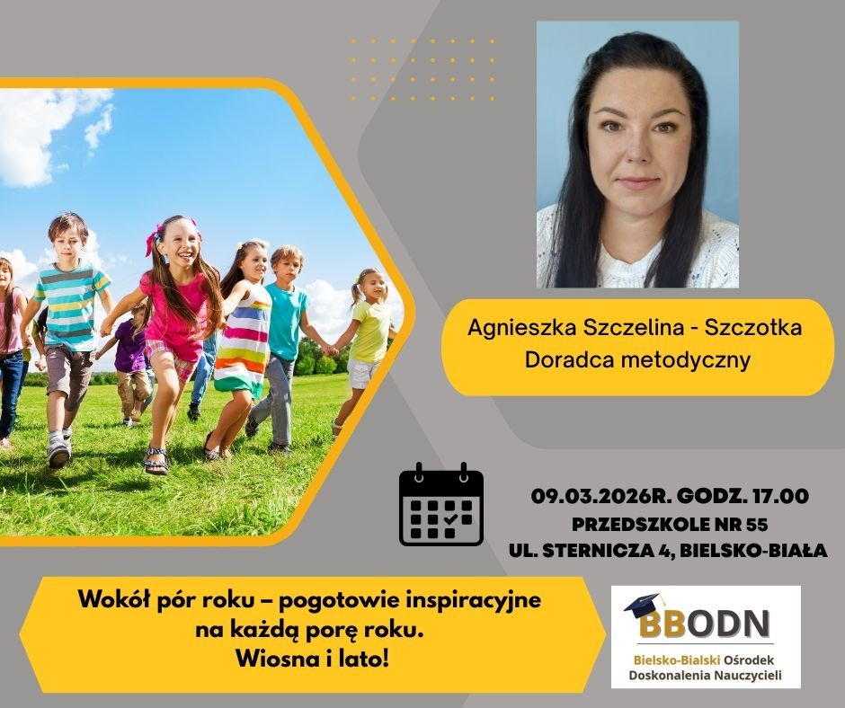 Warsztaty poprowadzi Agnieszka Szczelina‑Szczotka, doradca metodyczny, która od lat wspiera nauczycieli w rozwijaniu kreatywnych i angażujących form pracy z dziećmi.