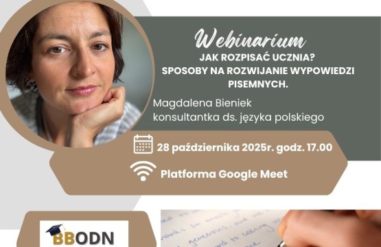 Szanowni Państwo,serdecznie zapraszamy nauczycieli języka polskiego na webinarium pt."Jak rozpisać ucznia? Sposoby na rozwijanie wypowiedzi pisemnych"...