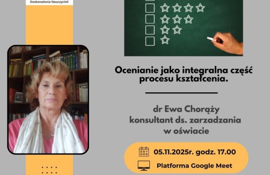 Szanowni Państwo,Serdecznie zapraszamy dyrektorów oraz nauczycieli szkół podstawowych i ponadpodstawowych na webinarium pt. „Ocenianie jako integraln...