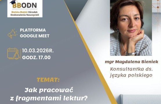 Zapraszamy nauczycieli szkół podstawowych i ponadpodstawowych na szkolenie online poświęcone efektywnej pracy z fragmentami lektur. Spotkanie poprowad...