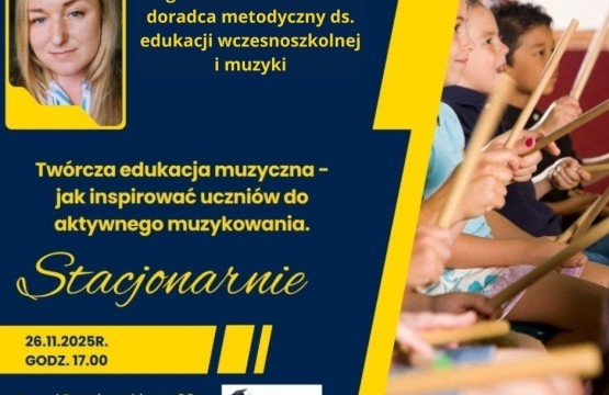 Szanowni Państwo,serdecznie zapraszamy nauczycieli edukacji wczesnoszkolnej i nauczycieli muzyki na warsztaty stacjonarne pt. "Twórcza edukacja muzycz...