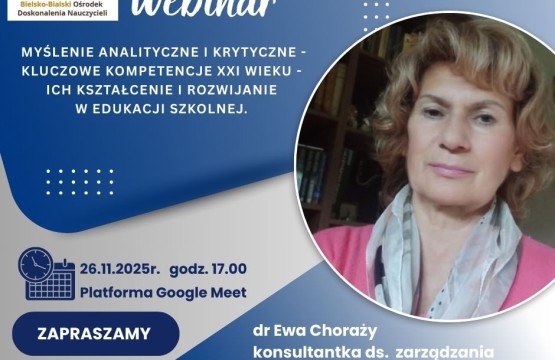 serdecznie zapraszamy nauczycieli zainteresowanych tematem: "Myślenie analityczne i krytyczne - kluczowe kompetencje XXI wieku - ic...