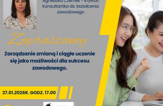 Zapraszamy na szkolenie online „Zarządzanie zmianą i ciągłe uczenie się jako możliwości dla sukcesu zawodowego”, które poprowadzi mgr Agnieszka Czerne...